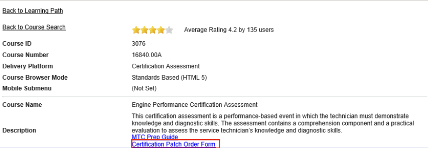 To order additional patches, either Cadillac-branded or GM, navigate to any of the Certification Assessment course details pages within the Center of Learning or use the form on the next page. Attached to the Certification Assessment course entries is the Certification Patch Order Form. By selecting this link, you will download the form which you can fill out electronically.